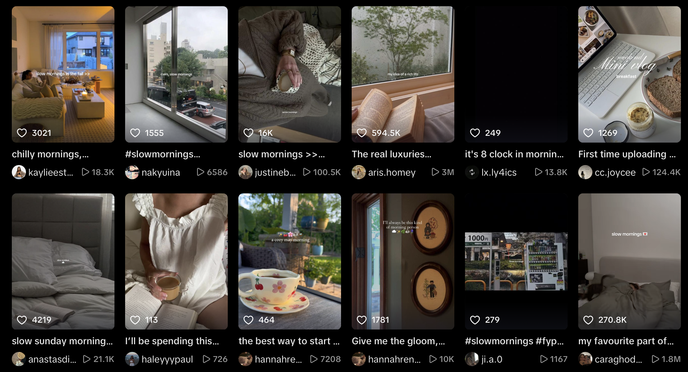 자기계발 트렌드는 소비자를 다소 불안하게 하고, 소비 욕구를 부추기고, 마케팅과 상품화가 용이해요. 발전이 미덕인 우리나라 사람들에게는 자신을 보여주는 콘텐츠로도 좋은 소재이고요. 자연히 미라클 모닝은 도서, 커뮤니티 사업 등으로 다양하게 상품화 되거나, SNS 콘텐츠의 단골 소재였는데요. 이에 비하면 슬로우 모닝의 존재감은 수면 위로 드러나지 않은 듯 보여요. 단적인 예로, 키워드를 검색했을 때 미라클 모닝은 수많은 게시물이 나오는 반면, 슬로우 모닝은 틱톡, 핀터레스트에서 '감성 브이로그'의 형태로 드물게 보이곤 합니다. 그러나 바로 이 점이 미라클 모닝과 슬로우 모닝의 차이일 수 있어요. 보여지고 인증하기보다는 경험 자체, 그리고 경험이 지속되는 것이 슬로우 모닝의 속성이거든요. |