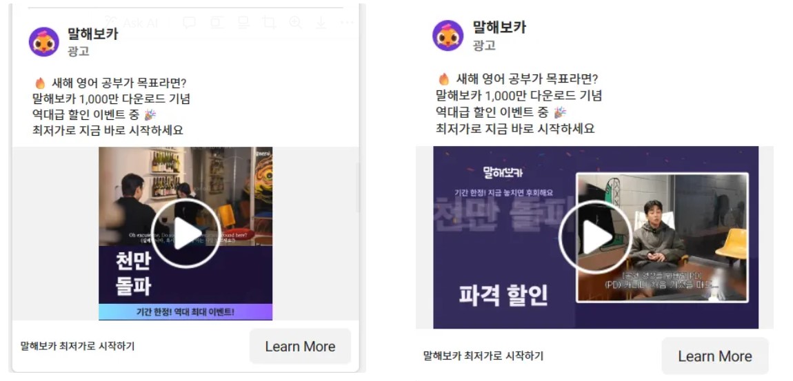 작년 이맘때, 마케터블에서는 영어 학습 앱 ‘스픽’과 ‘말해보카’의 신년 캠페인을 소개해드린 적이 있었죠. 2026년을 맞아, 한 번 더 준비했습니다. 스픽 vs 말해보카, 두 앱의 2026년 신년 마케팅 캠페인은 어떻게 달라졌을까요? 함께 살펴보시죠 👀